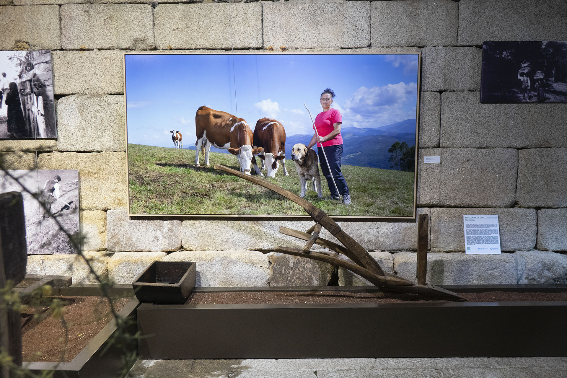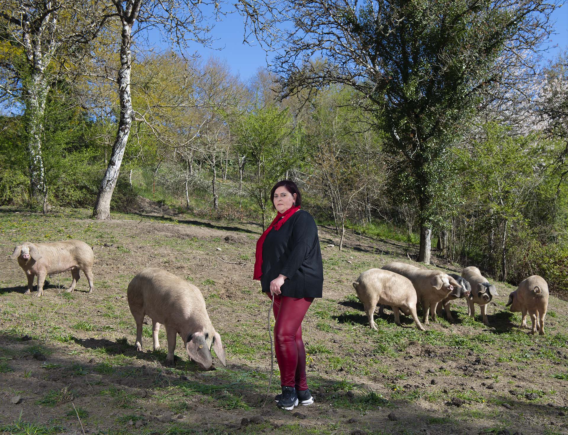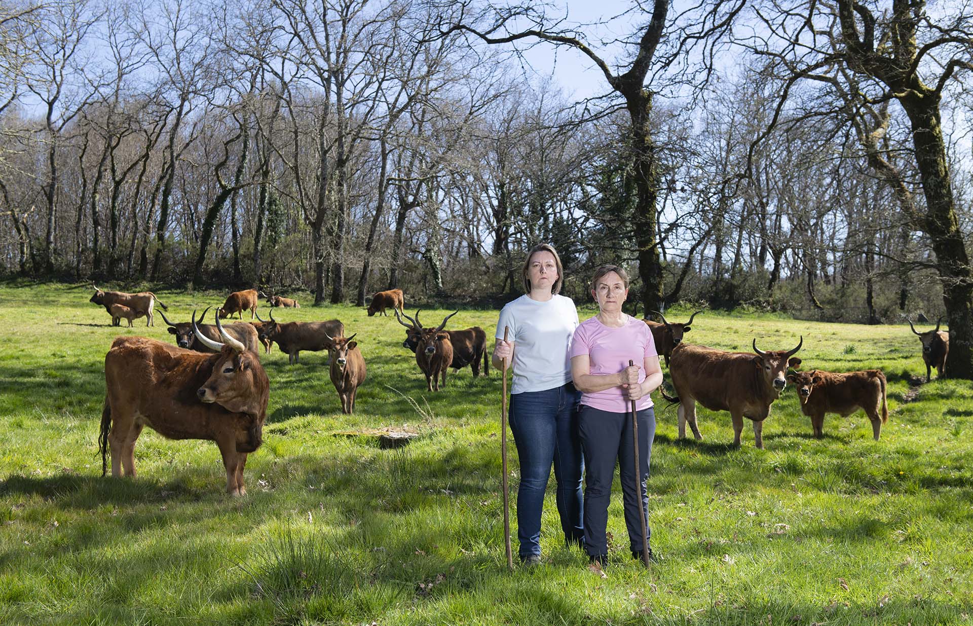Sin embargo, Facedoras de Lugo es singular en varios aspectos. Plasma en imágenes trabajos que implican relaciones estrechas y cotidianas con animales y, por ende, con el territorio. El paisaje aquí gana mayor presencia en unos encuadres de marcada horizontalidad, en ocasiones panorámicos. Aporta belleza, desde luego, pero también información sobre el cuidado y la explotación productiva del territorio.